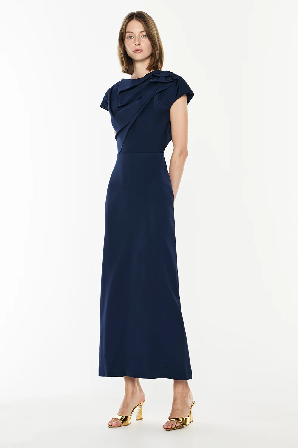 Introducing the Grand Illusion Maxi Dress, a true testament to modern elegance. Crafted from luxurious crepe satin, this exquisite dress features delicate ruched detailing at the neckline and offers a relaxed fit at the top. The full-length column skirt silhouette is tailored to be fitted at the waist and flows gracefully to maxi length, creating a stunning silhouette for any occasion.