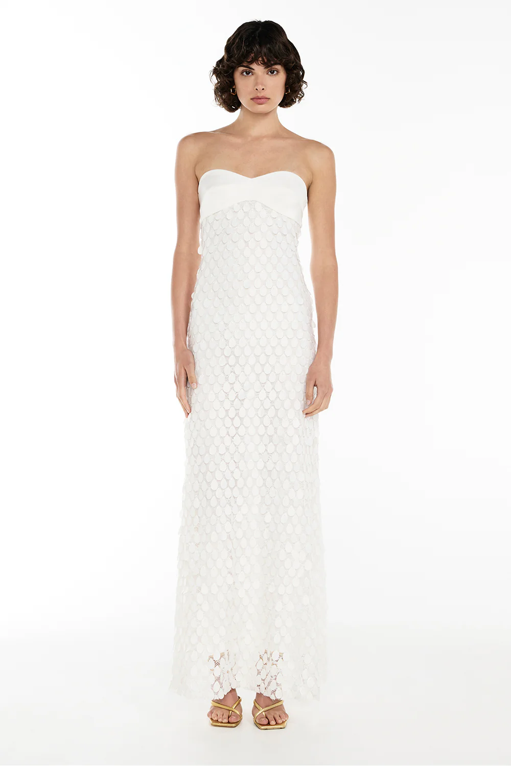 Introducing a new addition to our best-selling Supreme Extreme collection: the Supreme Extreme Balconette Dress. Featuring a crepe satin bodice and a teardrop lace applique skirt, this dress is ideal for making a stunning statement at your next occasion.